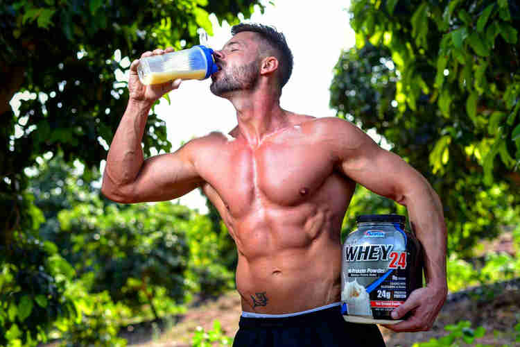 חלבון- אבקת חלבון אשר מופקת לרוב מחלבון מי גבינה- תוצר סופי של חלב. חומר בסיס, מי גבינה עובר כמה תהליכים אשר בסופם מתקבלת אבקת חלבון בטעמים שונים ואיכויות שונות. לרוב מדובר בכ80% מי גבינה ב100 גרם מוצר ועם כמות יחסית קטנה של פחמימה (3-6 גרם למנה). המוצר טוב למי שרוצה להגיע לכמות יומית נכונה של חלבון ובנוסף לגוון בתפריט.